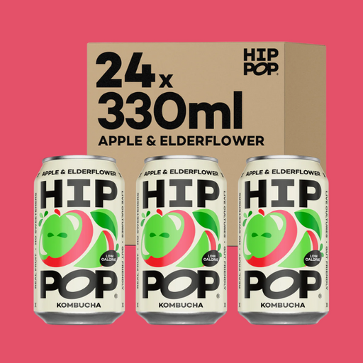 Support your digestive health and get a probiotic hit with Hip Pop Kombucha in Apple & Elderflower flavour.