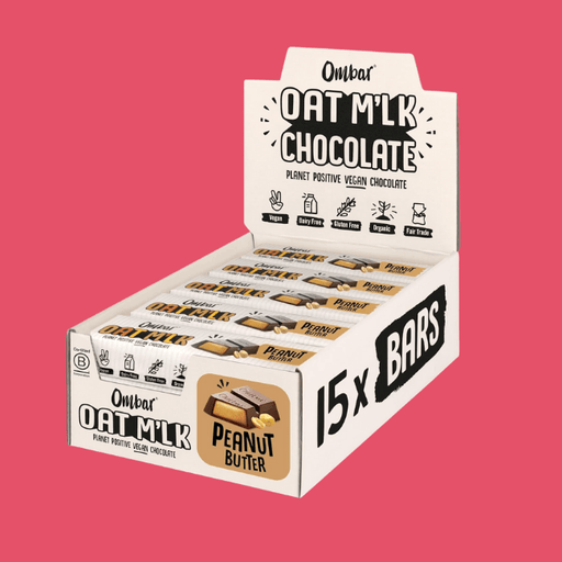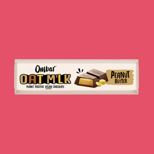 Ombar Vegan, Filled Chocolate Bar - Hazelnut Brownie A rich Peanut Butter centre encased in creamy vegan Oat M’lk chocolate made with sustainably s...