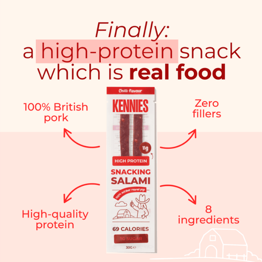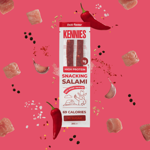 Meet your new everyday essential protein snack. The Kennies Chilli Pork Snacking Salami is crafted from premium outdoor-reared British pork and sea...