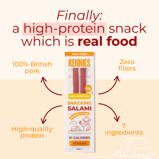 Meet your new everyday essential protein snack. The Kennies Classic Pork Snacking Salami is crafted from premium outdoor-reared British pork and se...