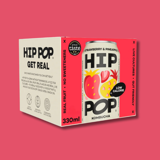 Support your digestive health and get a probiotic hit with Hip Pop Kombucha in Strawberry & Pineapple flavour.