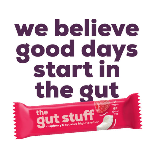 The Gut Stuff are snack bars created with your gut in mind, in a delicious Raspberry & Coconut flavour.