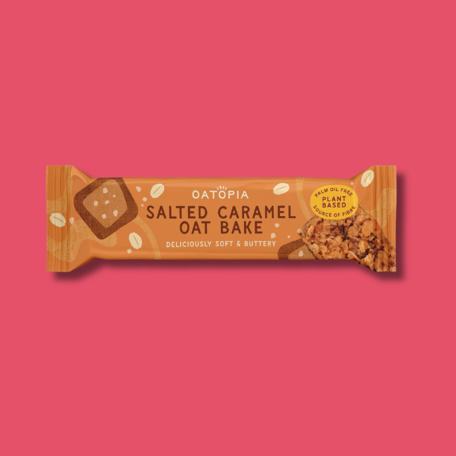 Oatopia's Salted Caramel Flapjack whispers of rich, decadent sweetness, a taste that feels both luxurious and familiar. Each bite is like being transported to a sun filled kitchen filled with the comforting scent of warm, golden oats.